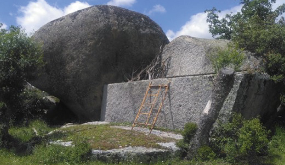 En todo el Berrocal, con concentraciones singulares como la del entorno de “Peña Campanario”, se conservan restos perfectamente visibles que atestiguan la actividad propia de los canteros dedicados al trabajo del granito. Son los grandes bolos de esta roca los que fueron empleados para la extracción de bloques.