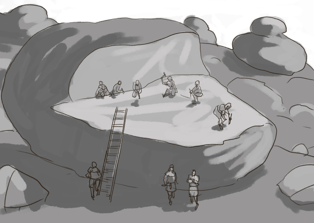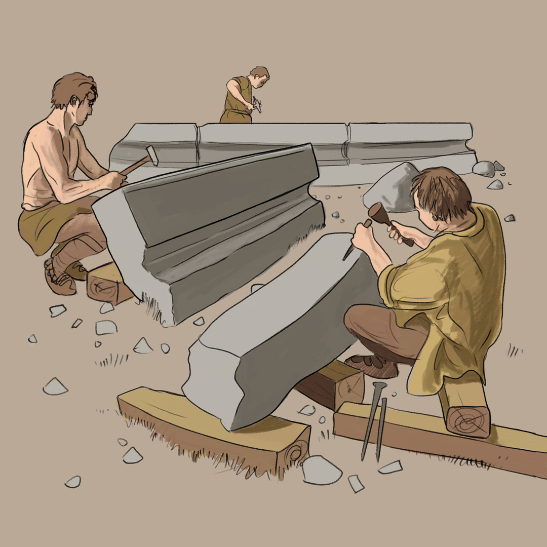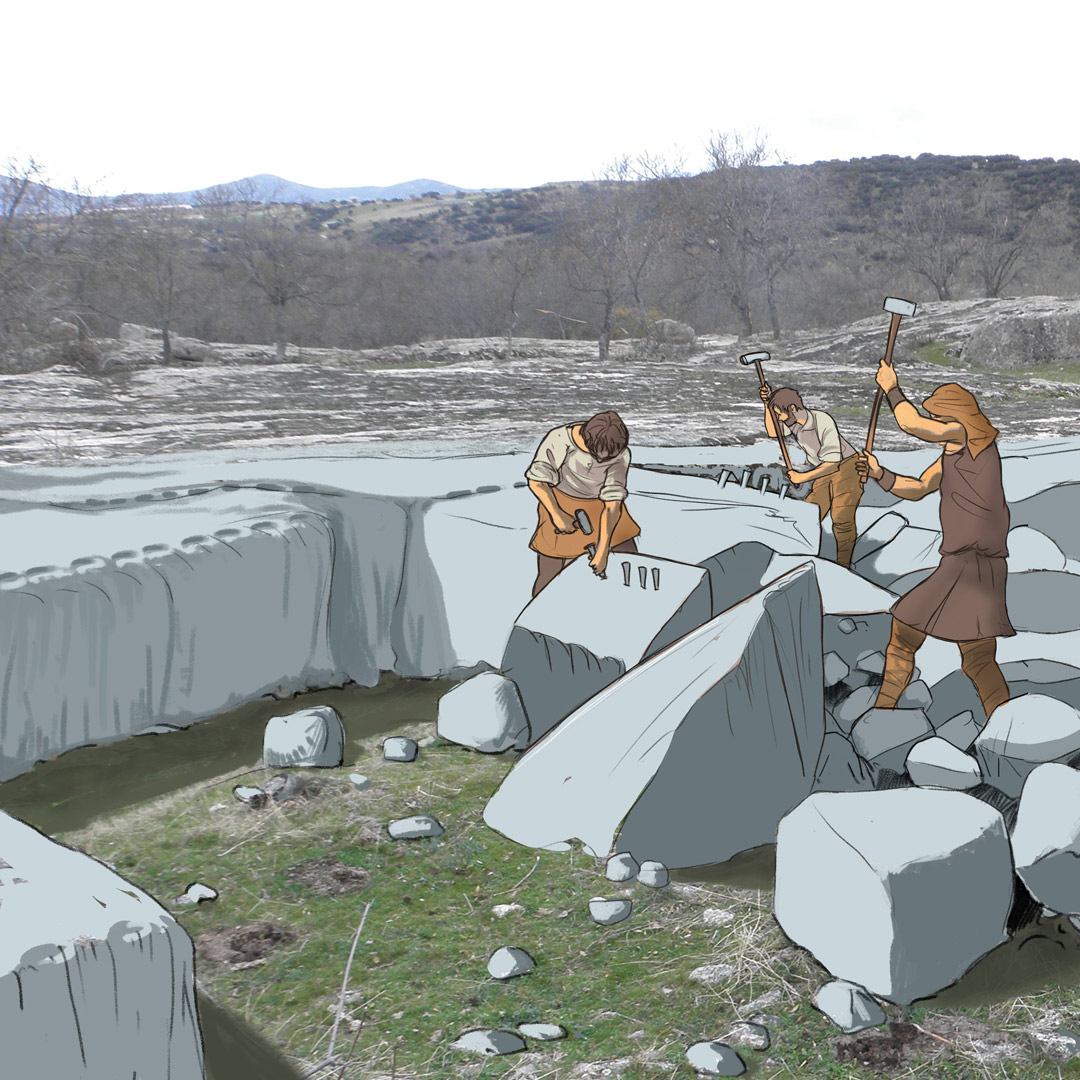 El trabajo de cantería comenzaba con la localización y desbroce de los sectores más adecuados para la extracción de bloques. Durante la investigación arqueológica de esta cantera se han diferenciado dos patrones de extracción de la piedra: