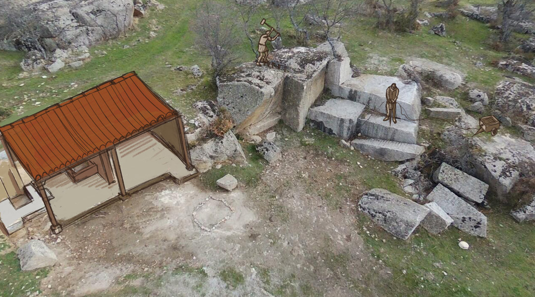 LOS TRABAJOS DE INVESTIGACIÓN ARQUEOLÓGICA LLEVADOS A CABO SOBRE EL TERRENO HAN PERMITIDO CONSTATAR LA EXISTENCIA EN LA PROPIA CANTERA DE UNA SERIE DE PIEZAS TALLADAS.